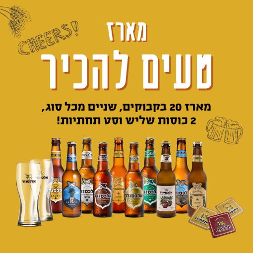 - 2 אלכסיידר (7%) – סיידר איכותי מתפוחי פינק ליידי מרמת הגולן בתוספת זנים נוספים, עם ניחוחות וטעמי תפוח ואיזון נפלא